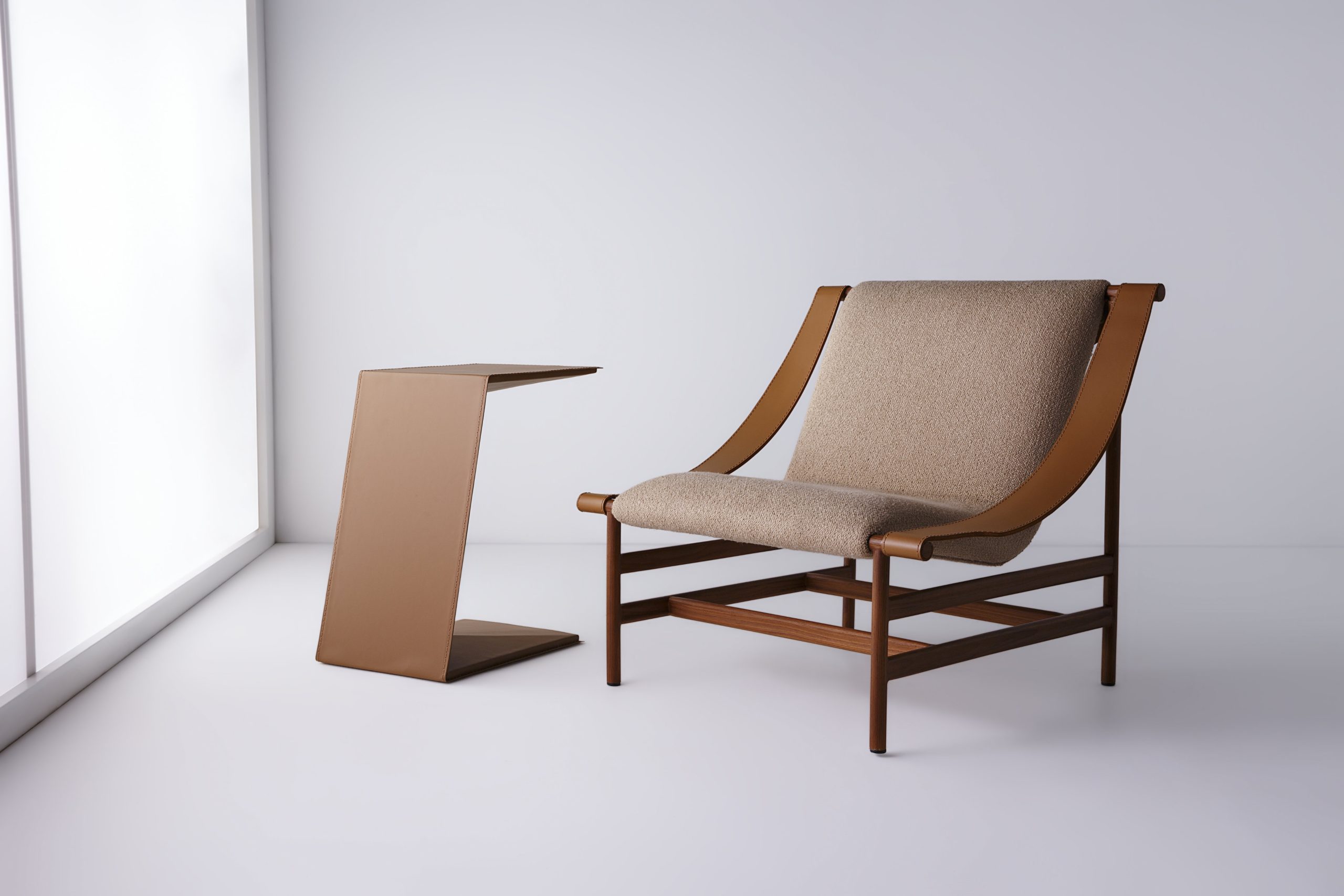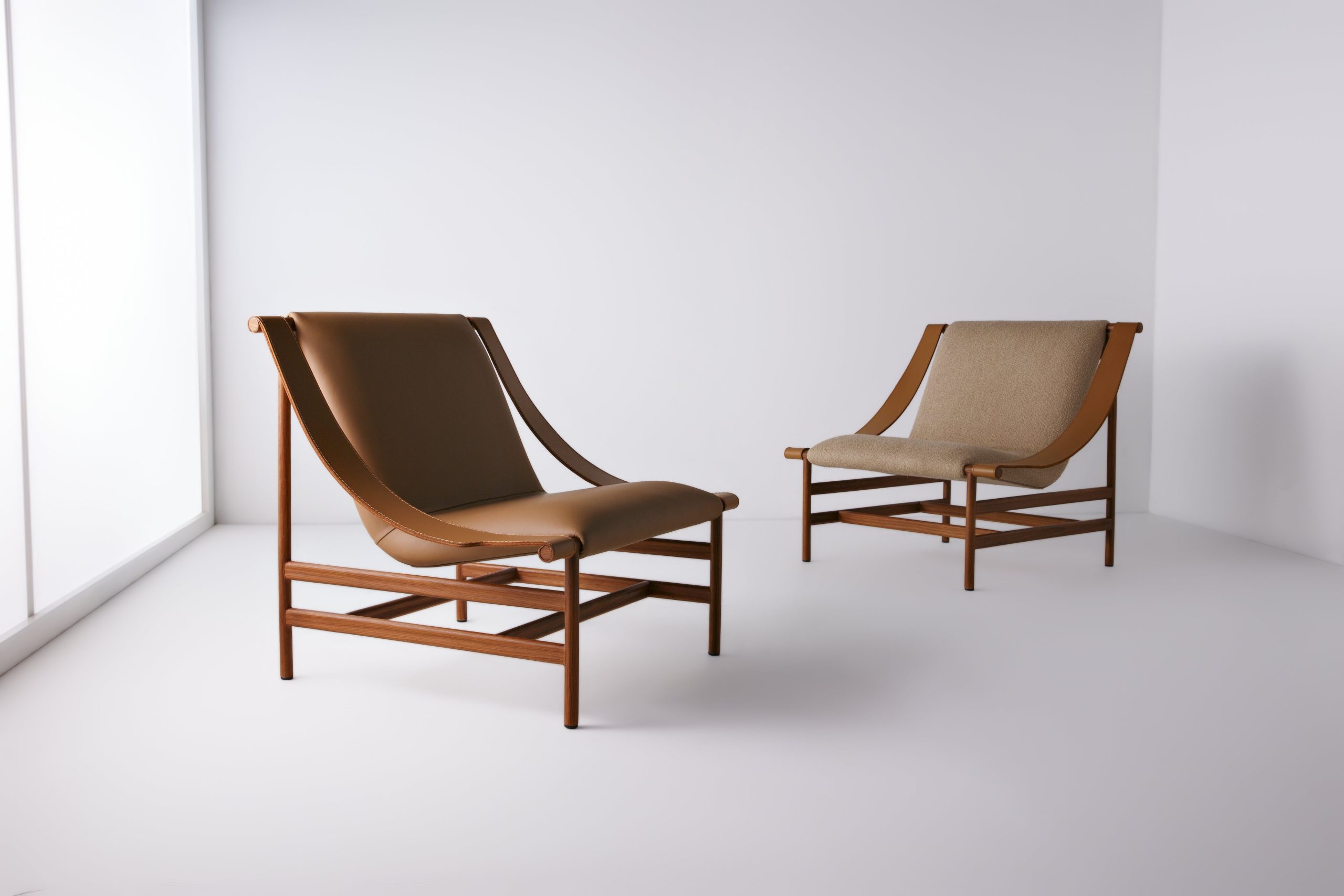 Os produtos em couro natural possuem design diferenciado, com peças divididas e detalhes em costura.
