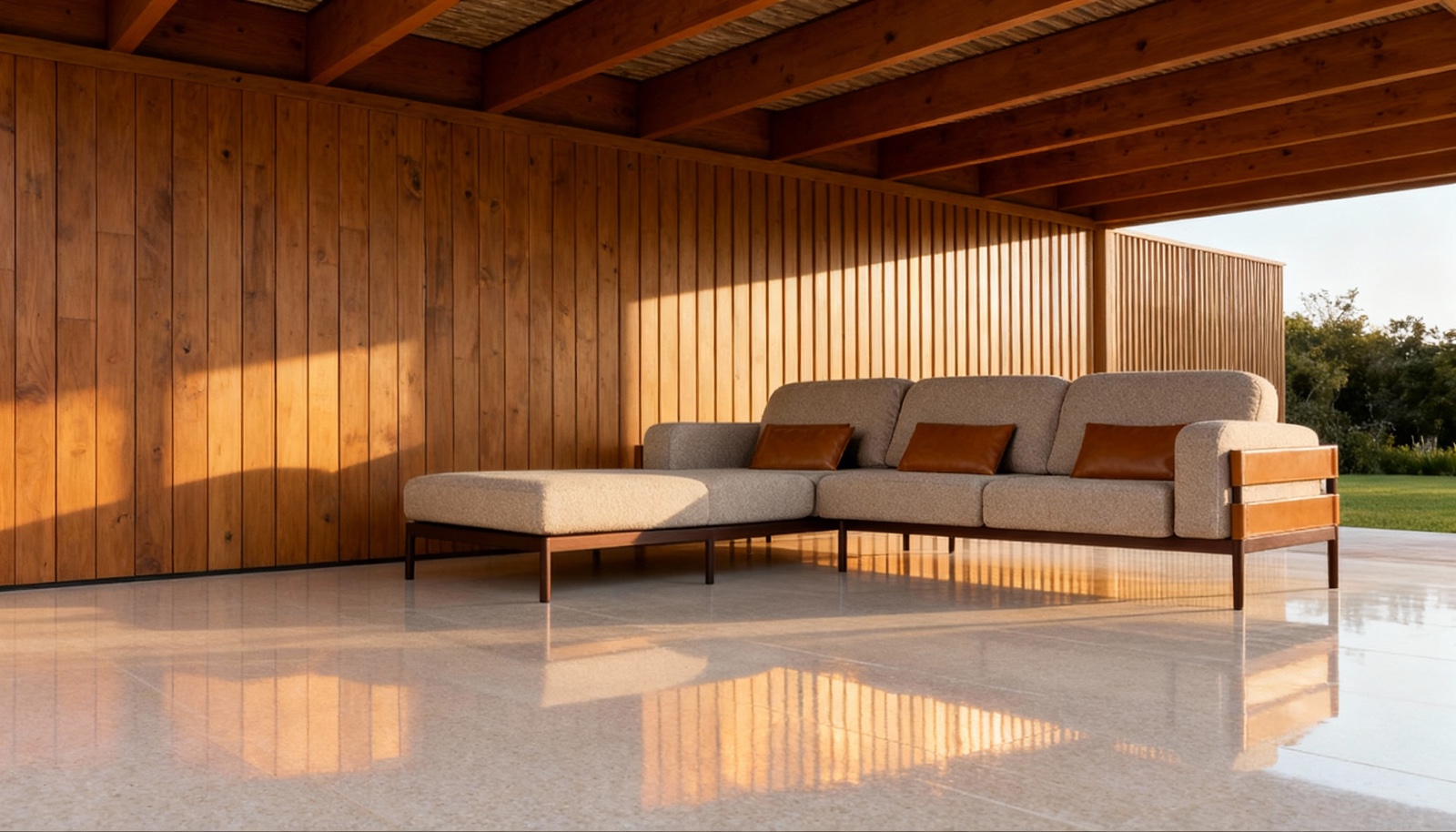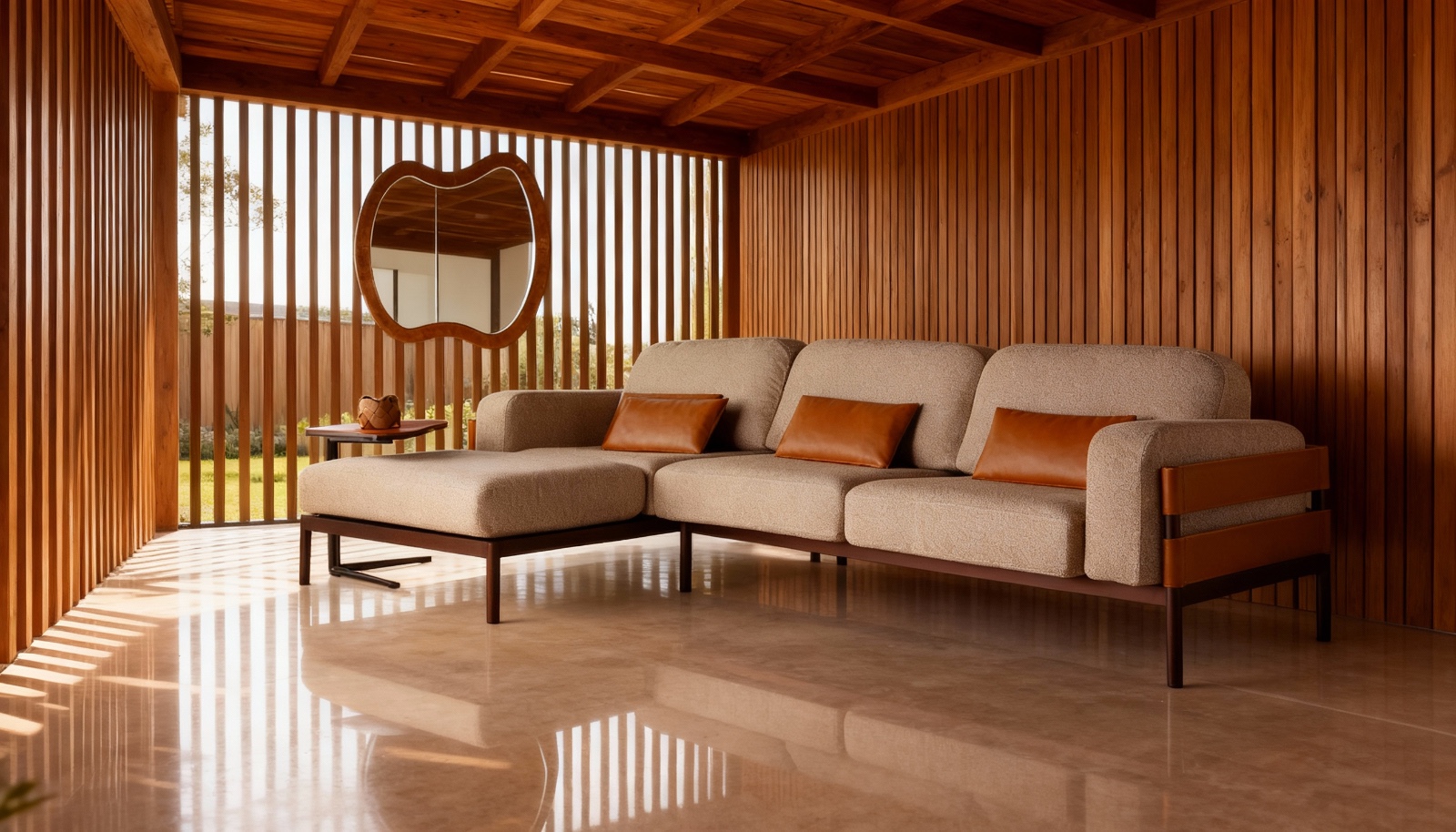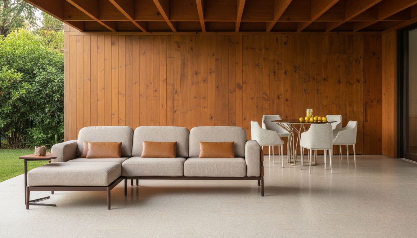 2-seater sofa + metal chaise with reconstituted leather and upholstered seat.