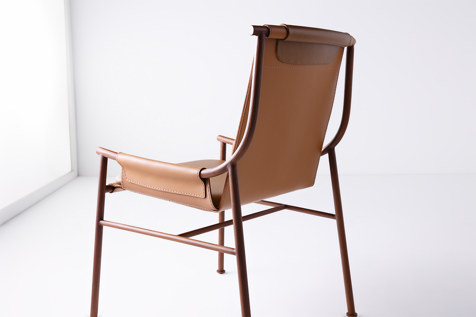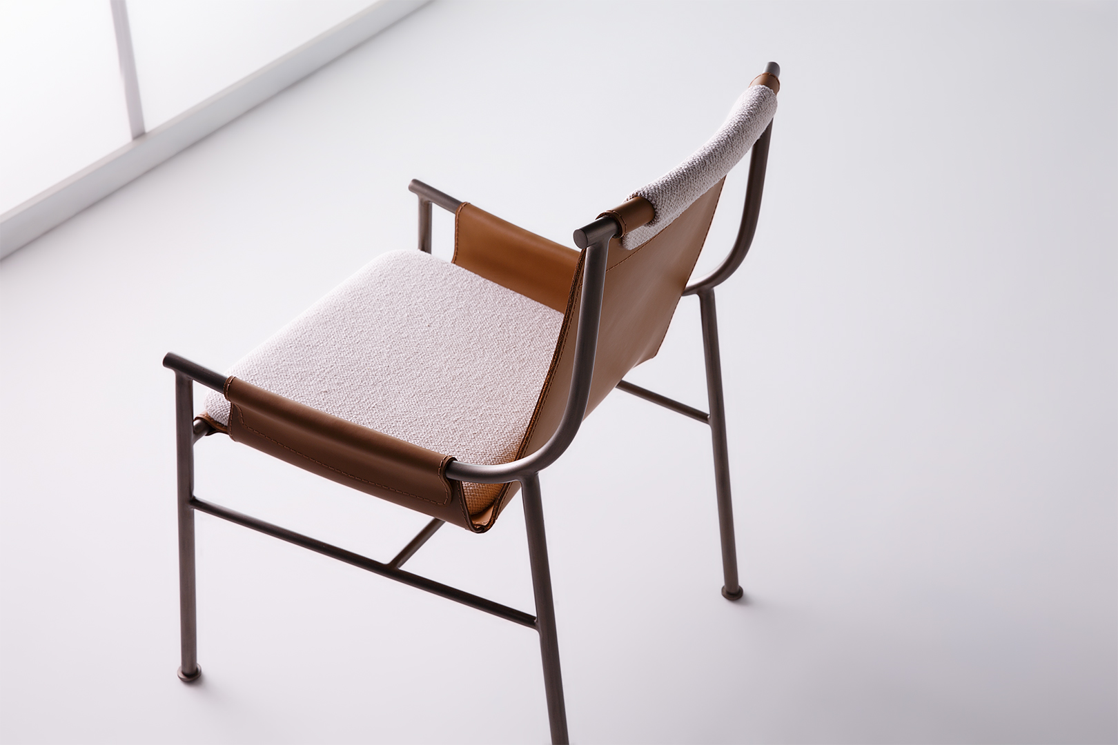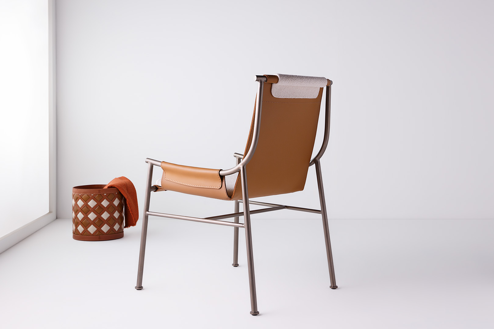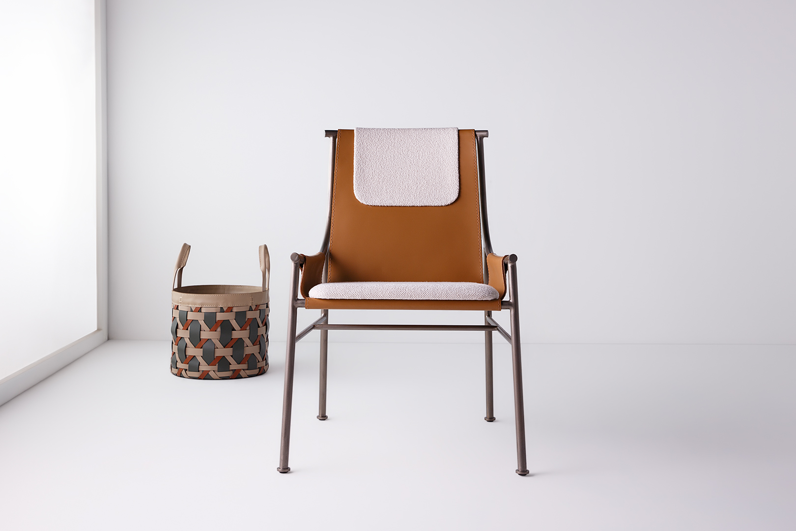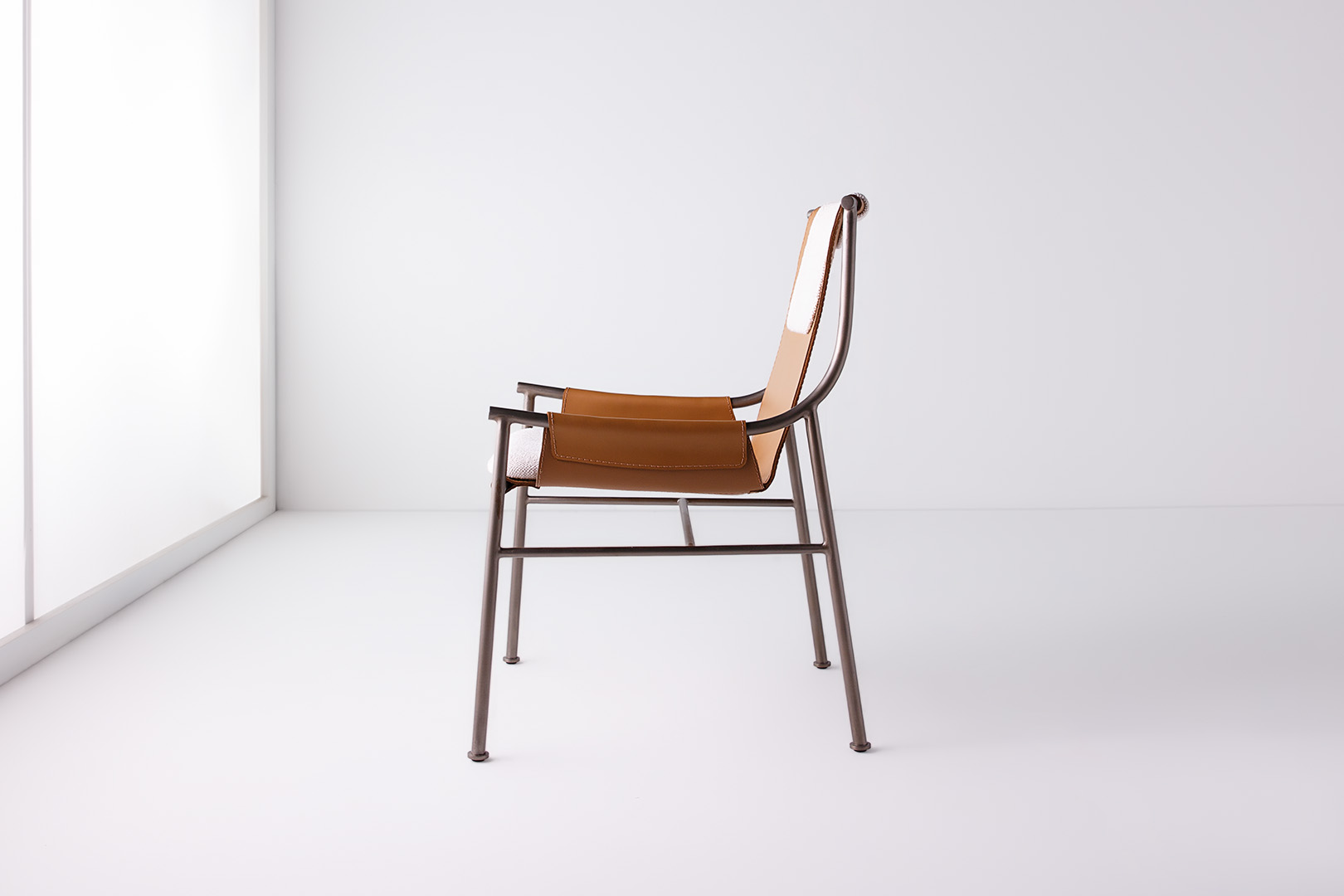Cadeira em metal com assento em soleta natural.